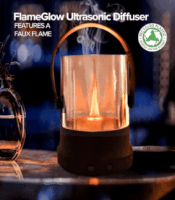 Daisy hand crafted ceramic aroma diffuser with ambient faux flame.